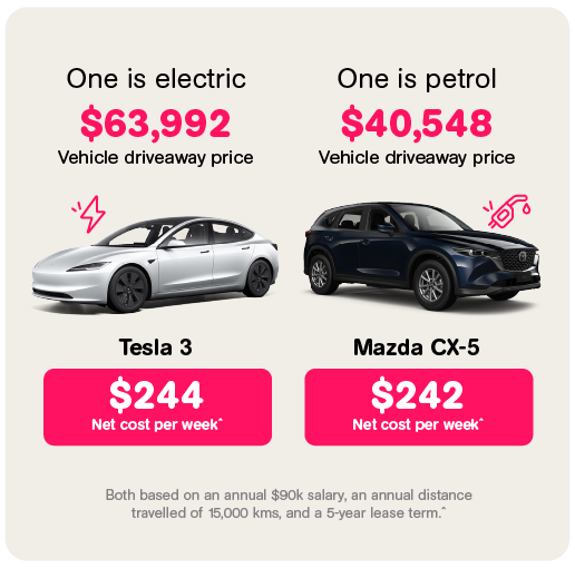 All this adds up to you leasing an electric car for almost the same weekly price as a petrol car worth over $20k less^.